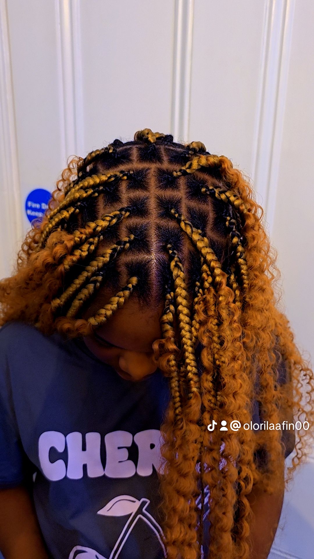 Knotless braids with honey-blonde curls for a light, free-flowing look