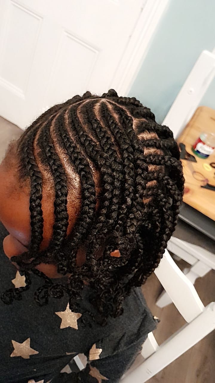 Neat, creative cornrow braids designed for children with gentle styling.