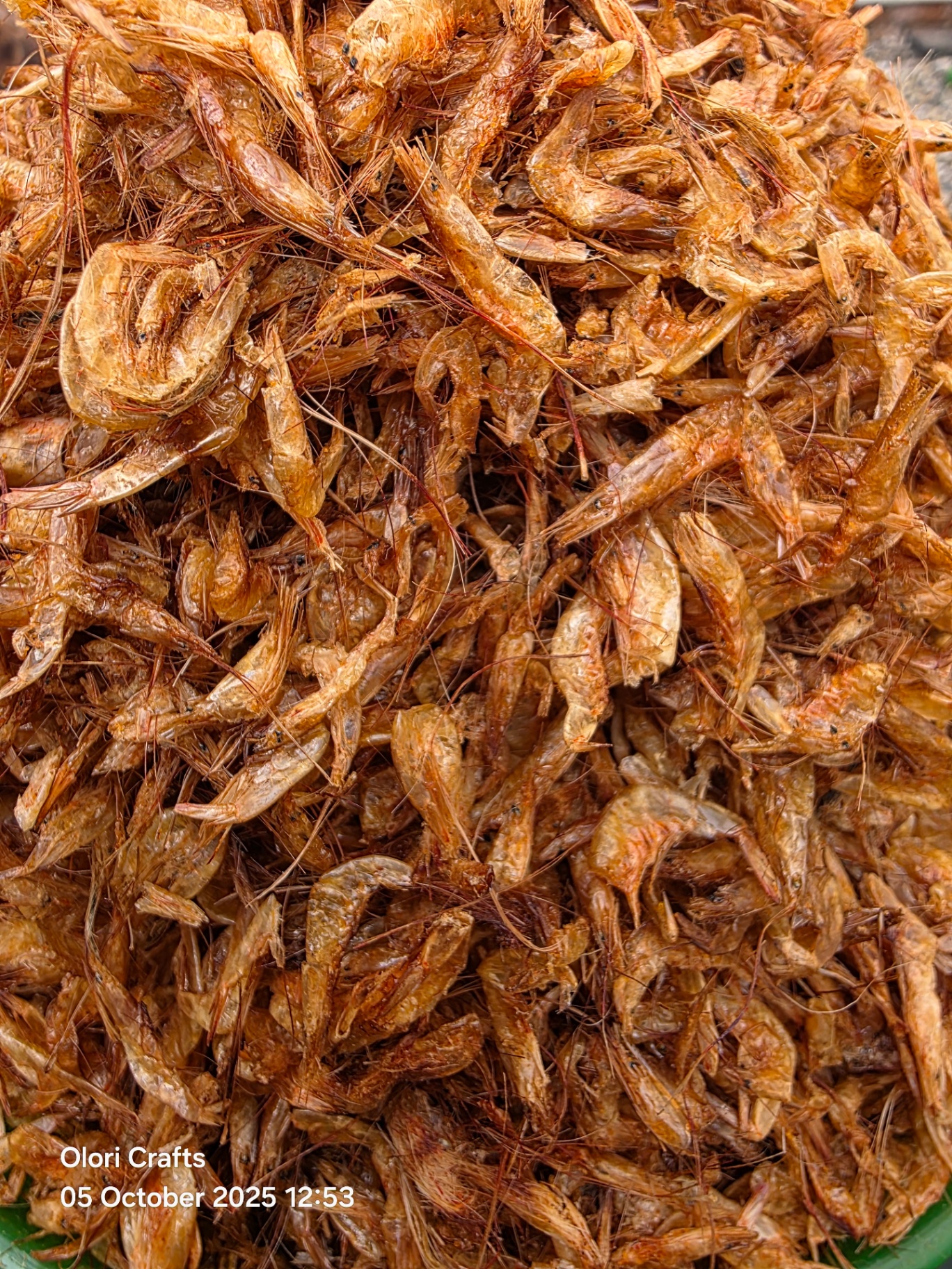 Crushed and dried crayfish, an essential ingredient in Nigerian dishes for deep umami flavor